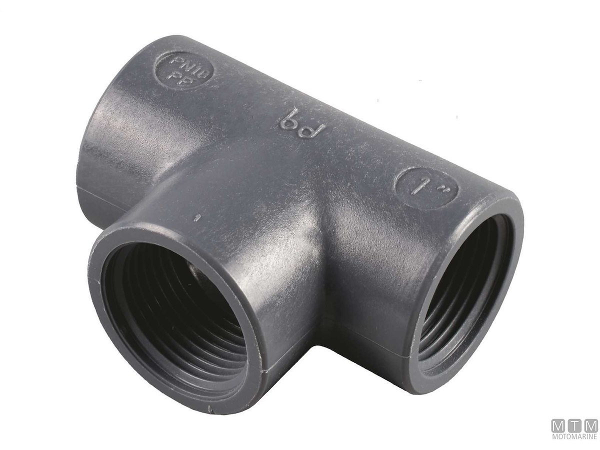 Raccordo a T in Polipropilene composito caricato con fibre di vetro. Tenuta superiore del filetto e della pressione, resistente all'abrasione, all'usura, esente da corrosione chimica e galvanica. Idoneo per passaggio acqua dolce a norma CE 10/2011 e DM174/2004. Pressione di esercizio 10 bar a max 100°C.
