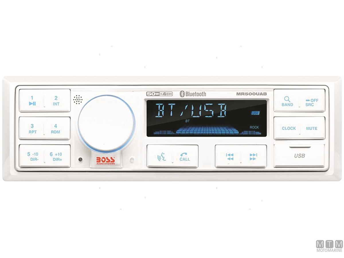 Radio lettore BOSS MR500UAB con tecnologia DVA (assistente vocale digitale) che consente di interrogare l'assistente dello smartphone via Bluetooth tramite il tasto Push to Talk. Con display LCD e tasti retroilluminati, radio RDS, lettore MP3 integrato, presa USB frontale protetta con gommino e Bluetooth integrato con funzioni chiamata e riproduzione musica o vivavoce da smartphone.
