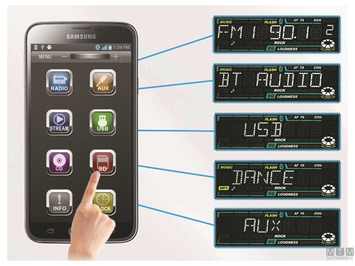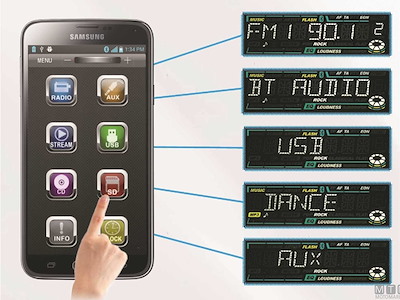 Radio lettore BOSS MR762BRGB con frontalino estraibile, display LCD e tasti retroilluminati a 7 colori a scelta. Tuner RDS, presa USB e ingresso AUX frontali protetti con gommino, lettore MP3 integrato, slot SD card frontale, lettore CD, microfono con funzione viva voce, Bluetooth integrato con funzioni chiamata e riproduzione musica per telefono cellulare, App per Android per il pieno controllo delle funzionalità. Compreso di telecomando a infrarossi, slitta e cavi di collegamento.