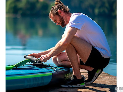Rete portaoggetti da sup Jobe per riporre una bottiglia o altri accessori, con tasca portacellulare con cerniera idrorepellente, cordino elastico con 4 ganci per collegare la rete cargo al sup.