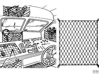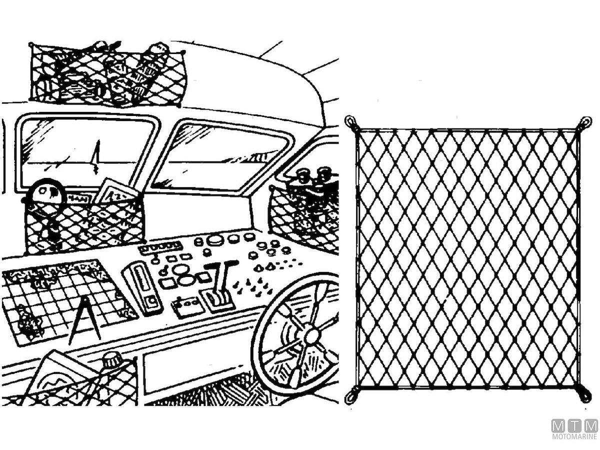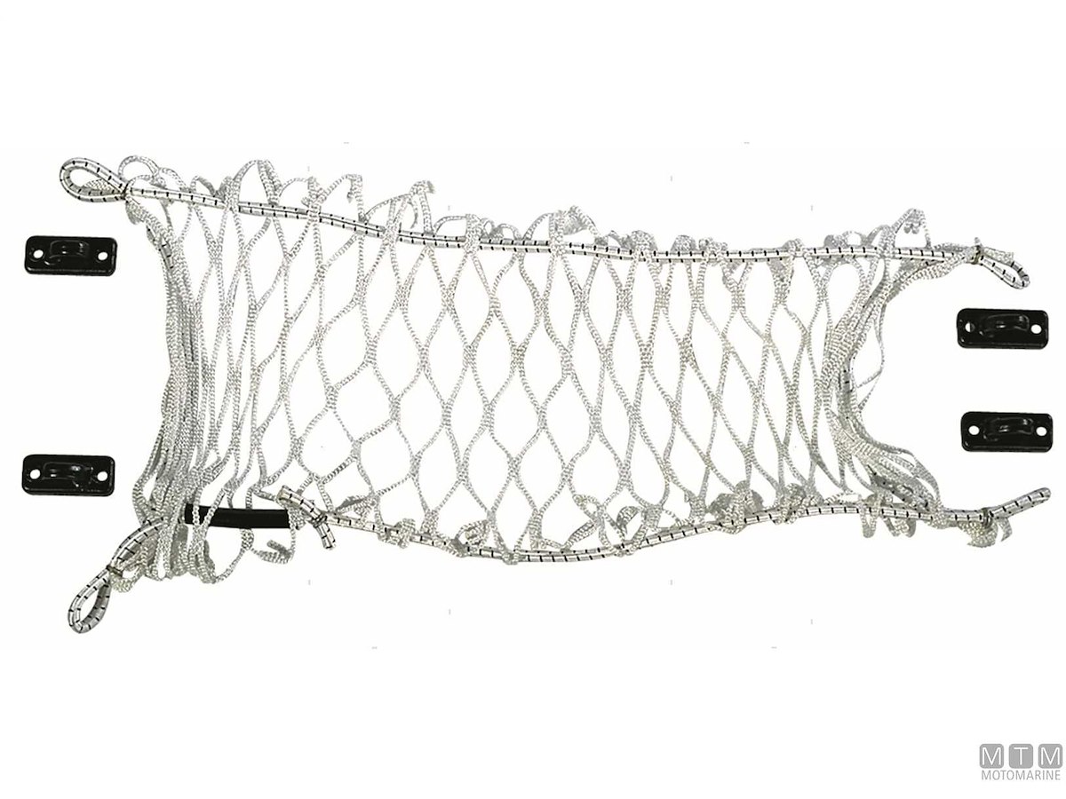 Reti elastiche porta oggetti e salvacadute per cucette con ganci d'attacco.
