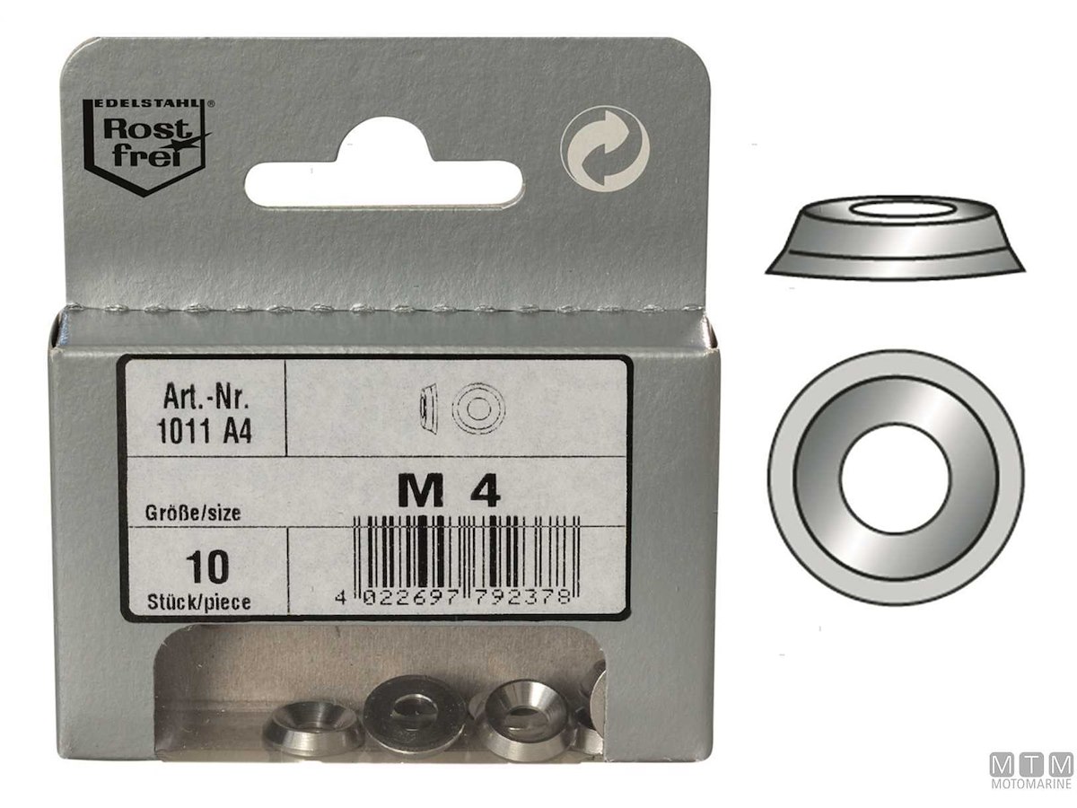 Rondelle coniche (rosette) in Acciaio Inox A4. In comodi ed eleganti blister.