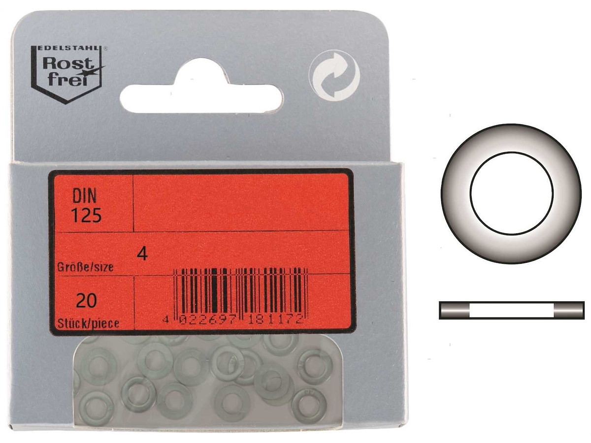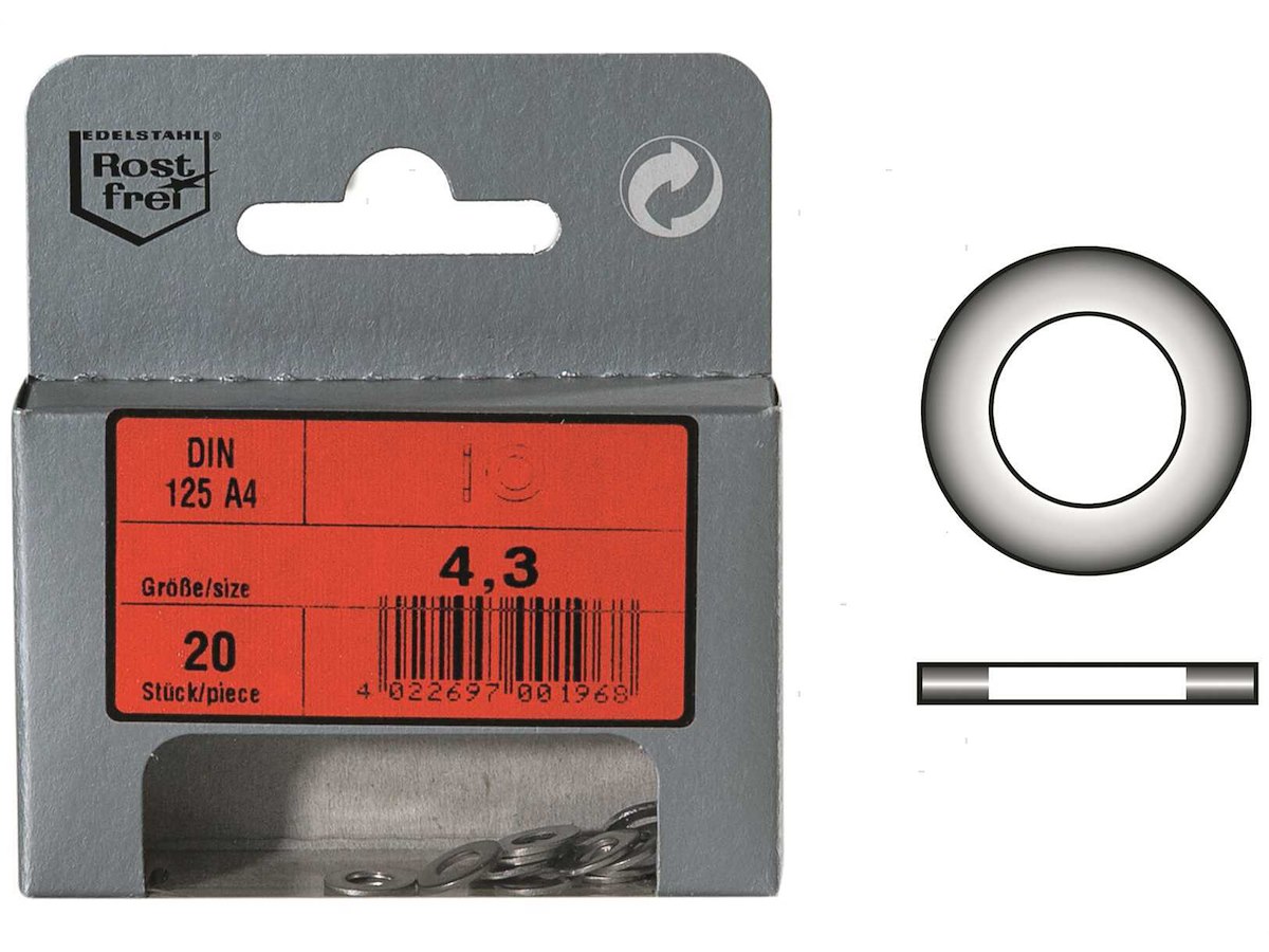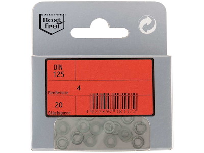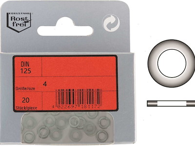 Rondelle piane DIN 125 in Acciaio Inox A4. In comodi ed eleganti blister.