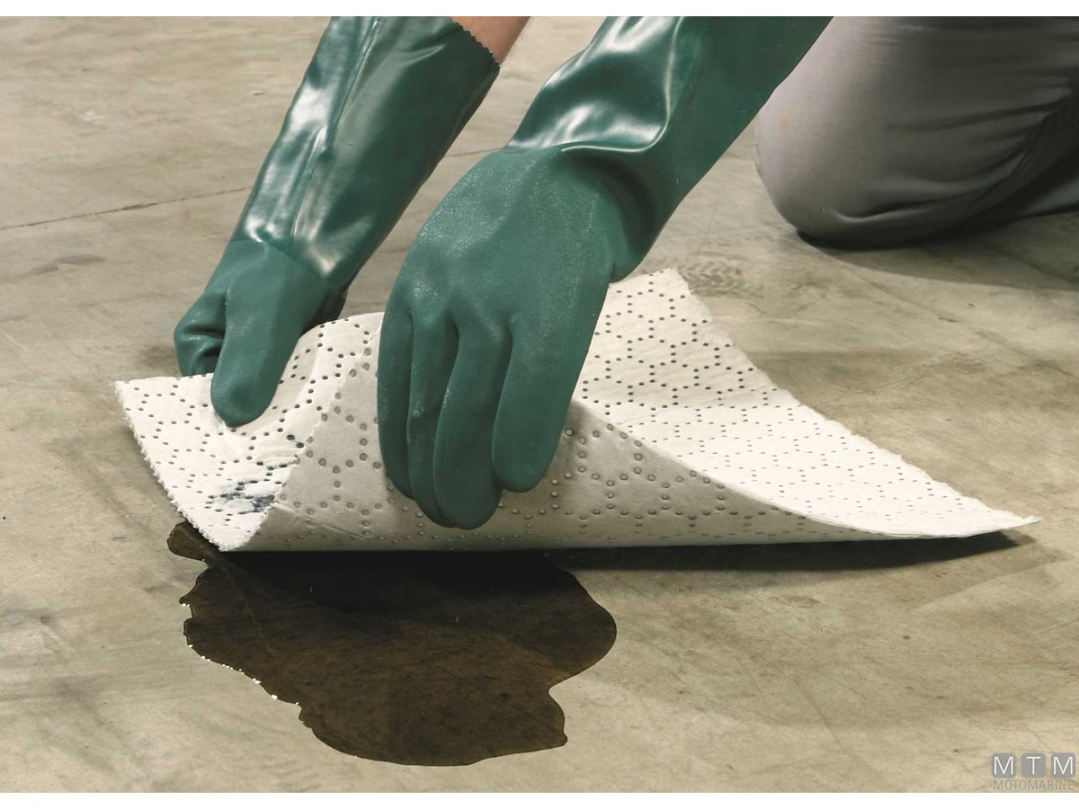 Panni monouso assorbenti in materiale speciale che assorbe olio e idrocarburi ma non assorbe l'acqua. Confezione in rotolo da officina con 120 panni a strappo dim 40x50 cm spessore 3 mm. Ideale per sentine, vani motore e per qualsiasi spandimento.