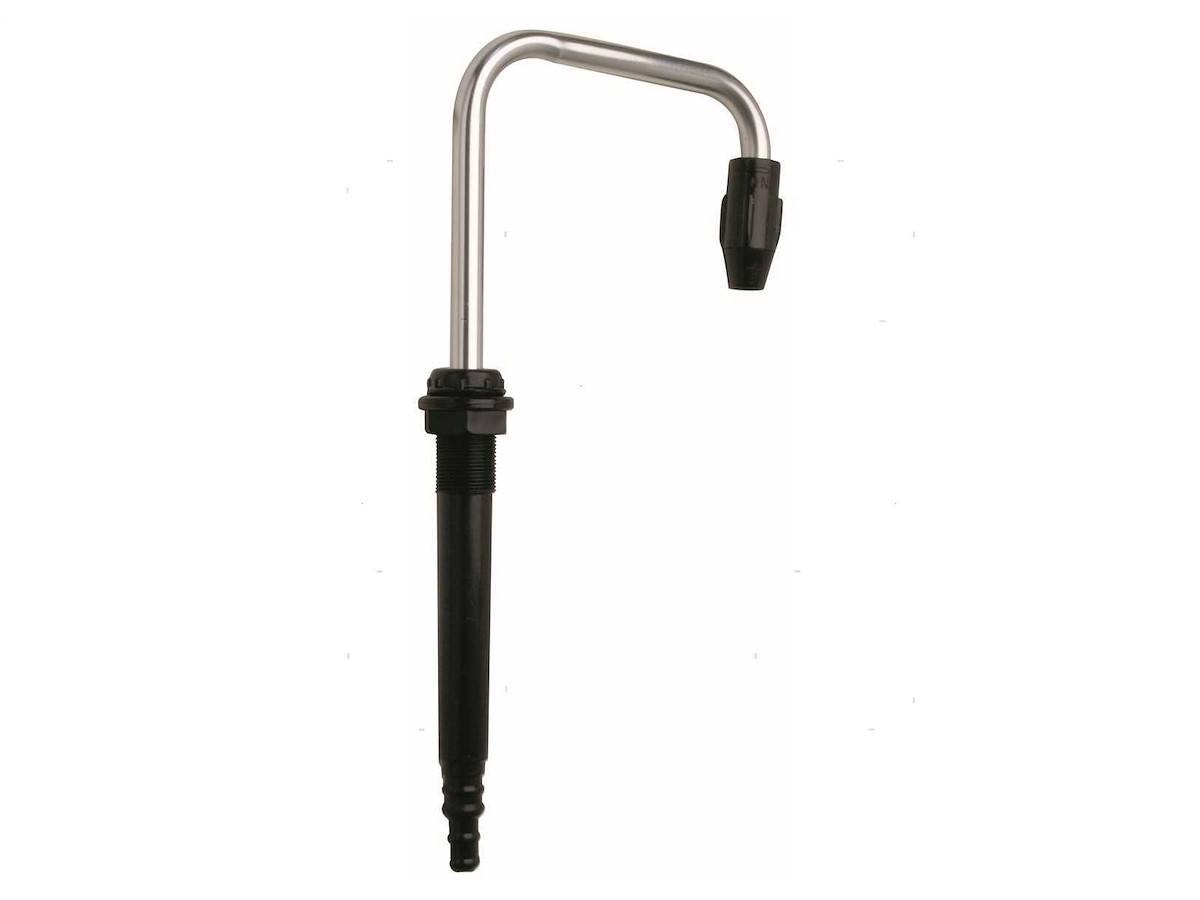 Rubinetto girevole con canna retrattile e chiusura.