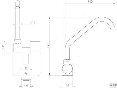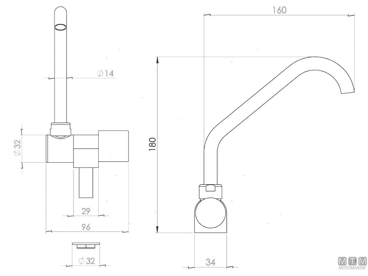 Rubinetto con canna alta orientabile e abbattibile. Attacco filettato 3/8. Cod.: 1510007 H mm: 180 Base mm: 96