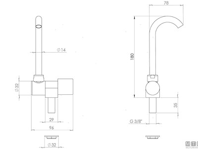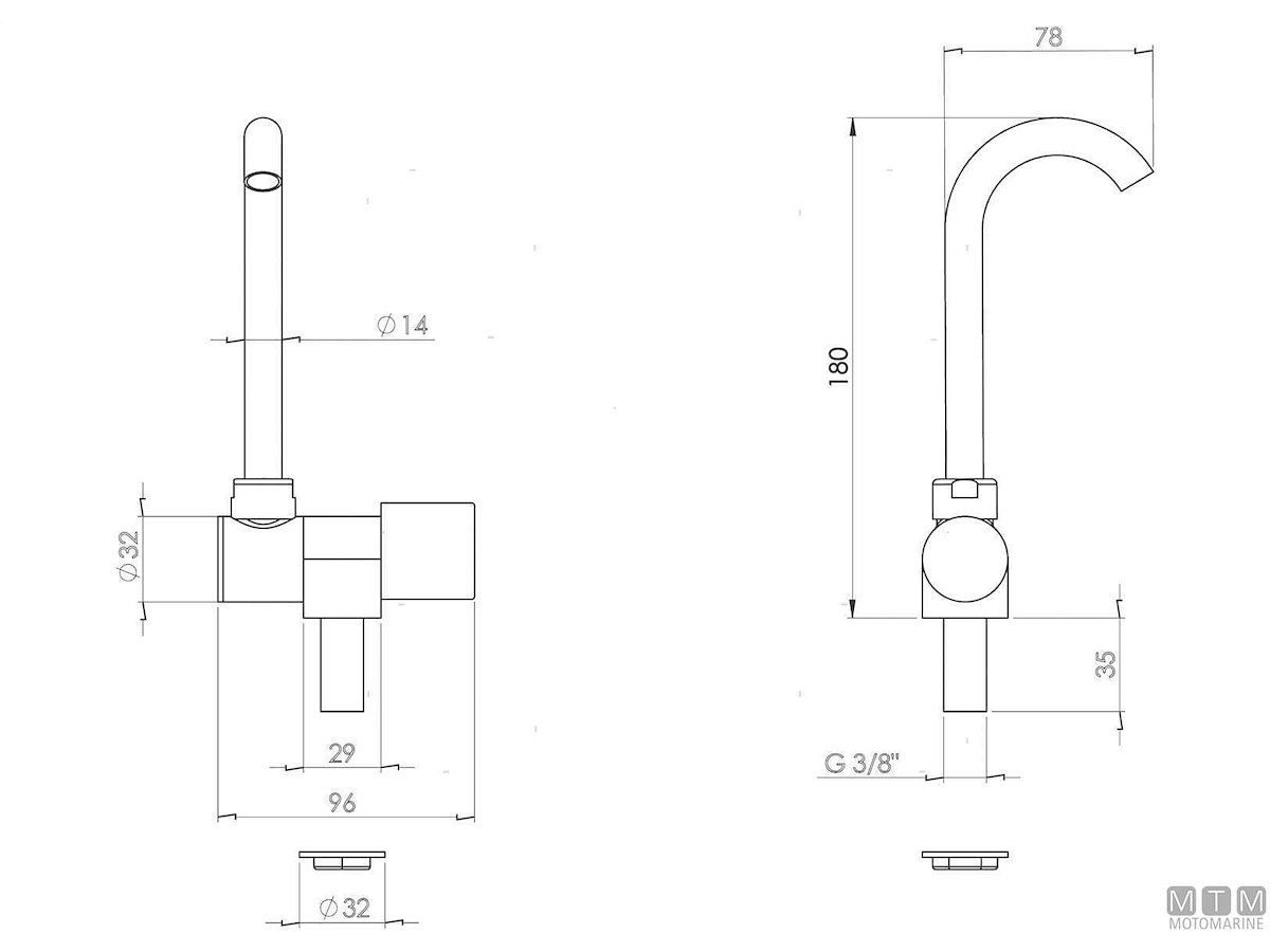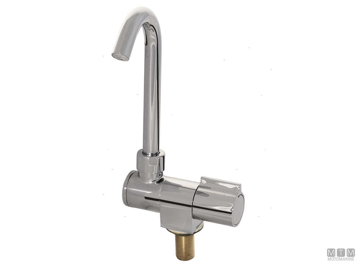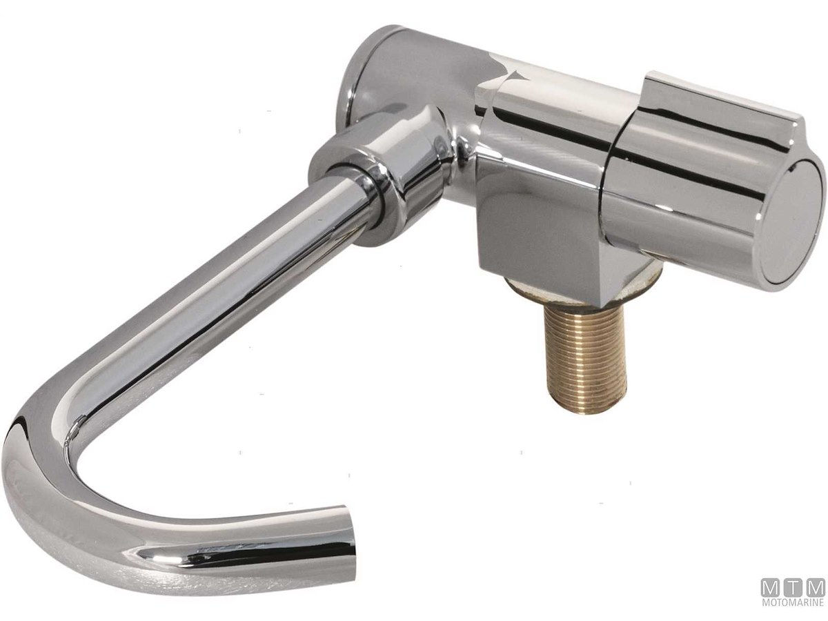 Rubinetto con canna orientabile e abbattibile. Attacco filettato 3/8. Cod.: 1510004 H mm: 180 Base mm: 96