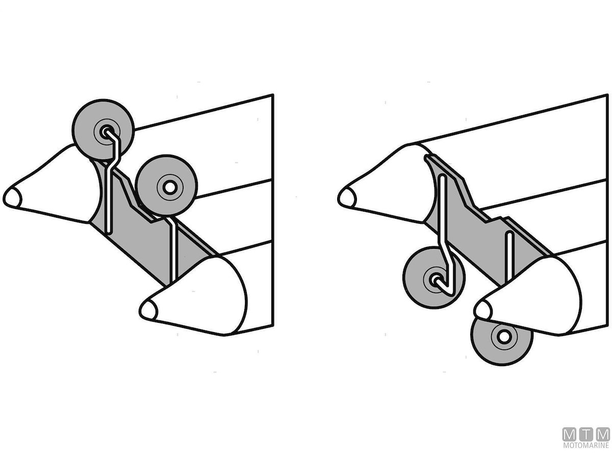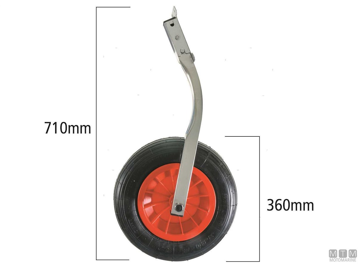 Ruote di poppa per alare canotti pneumatici e piccole imbarcazioni. Si sollevano o si tolgono durante la navigazione. Supporti e giunti in Acciaio Inox.