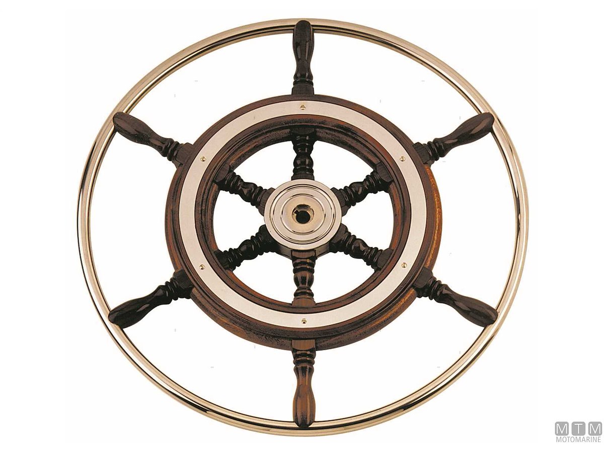 Ruote Timone in Mogano con impugnatura in Acciaio Inox e mozzo in Ottone cromato. Mozzo da 19mm - 17mm con scanalatura larga 5 mm.
