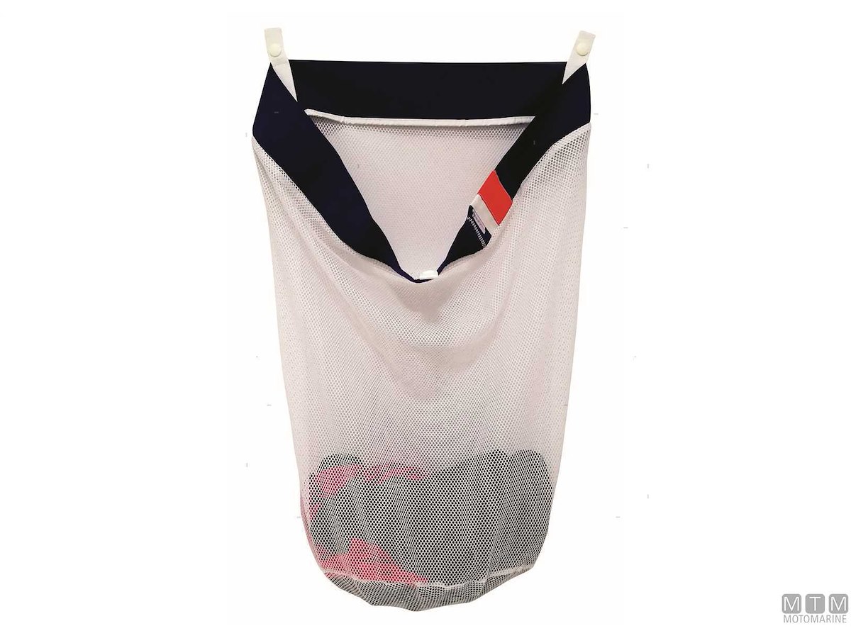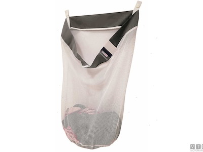 Sacca in rete per contenere il bucato. Dotata di attacchi a parete.