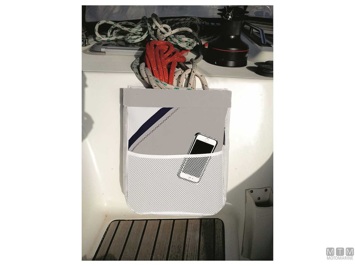 Sacca portaoggetti da pozzetto in tessuto acrilico idrorepellente e resistente ai raggi UV. Con tasca frontale a rete porta accessori e fondo a rete per il drenaggio. Ampia apertura con bordo rinforzato per un comodo e facile carico. Per riporre scotte, drizze, manovelle winch, scarpe, guanti, bibite, etc. Due i sistemi di fissaggio a scelta in dotazione: 1) Con ventose per un facile e sicuro fissaggio senza viti 2) Con gancetti per un facile e sicuro fissaggio con viti