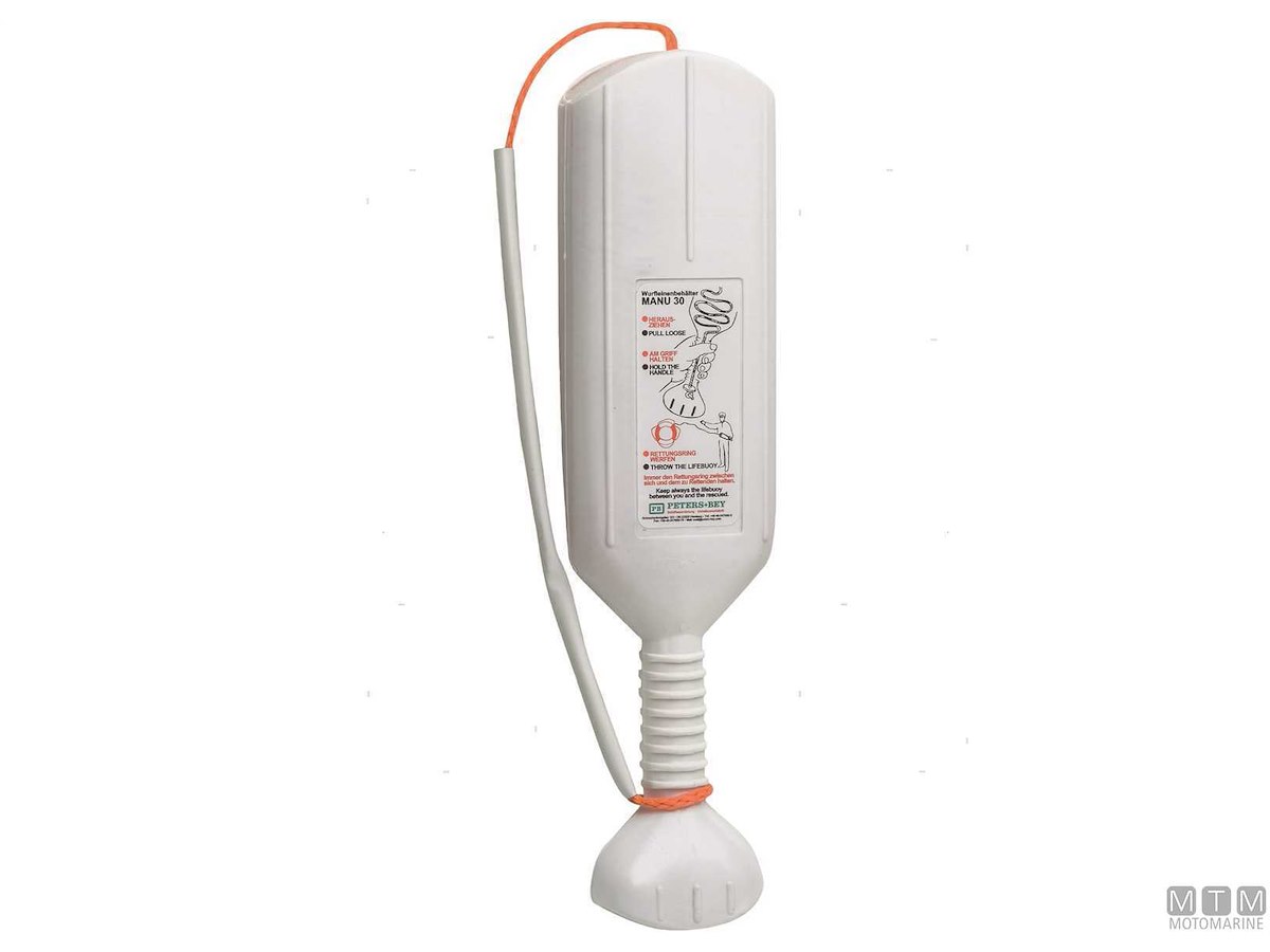 Kit lancia sagola in custodia rigida per salvagenti anulari con diametro interno da 45 cm. Conforme Solas e DM385 29/09/99 per navigazione mercantile e da diporto. Sagola ø 8 mm x Lunghezza 30 m - Tenuta: 400 Kg.