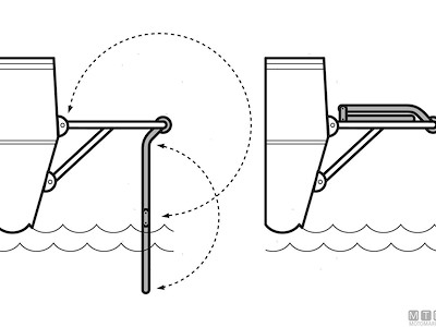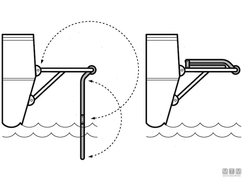 Scaletta pieghevole in Acciaio Inox con attacco a morsetto per tubi da ø 22/25 mm. Montaggio su plance e plancette.