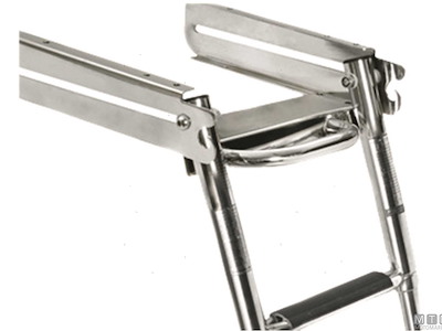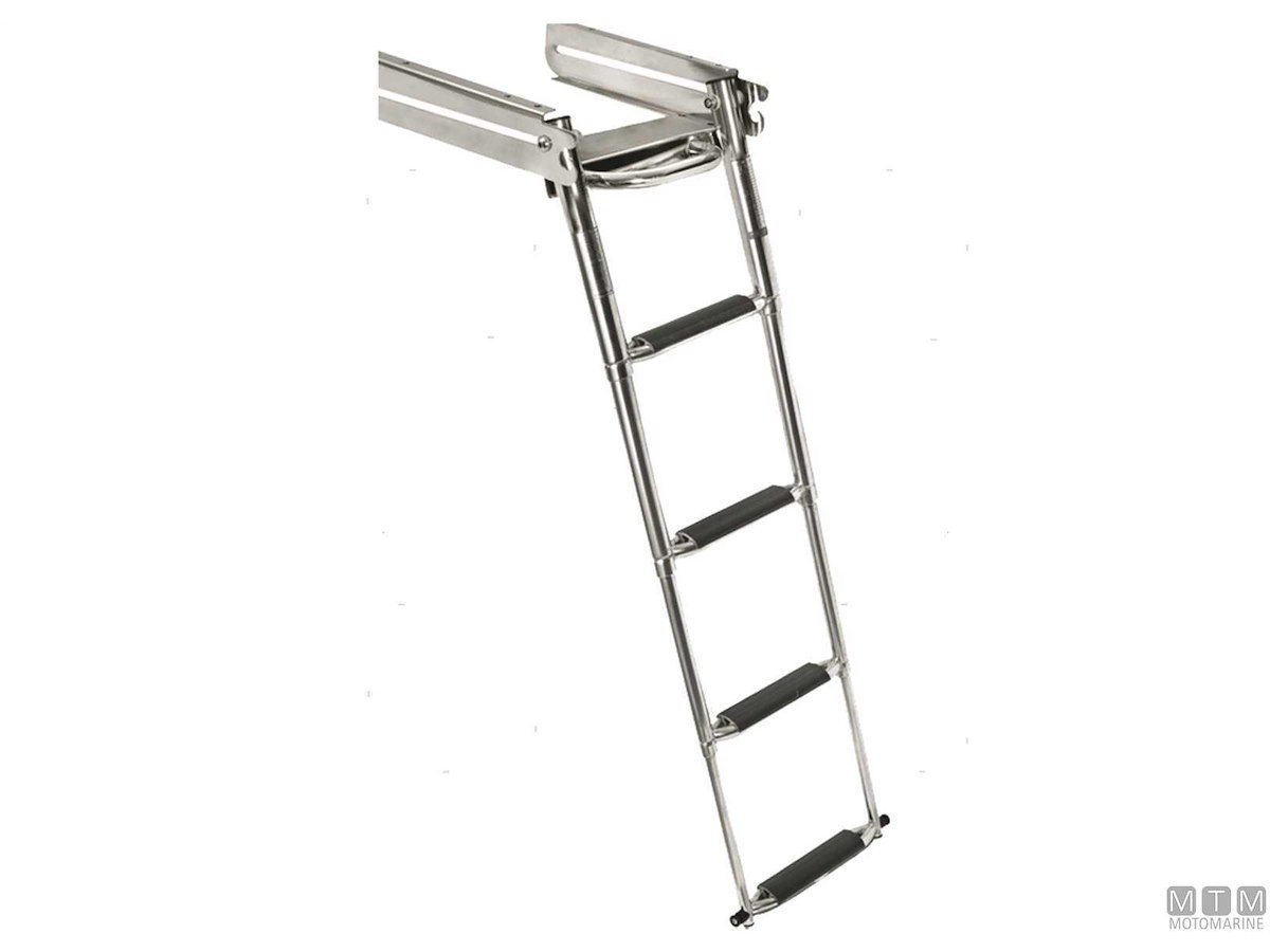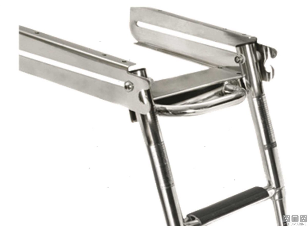 Scalette telescopiche in Acciaio Inox complete di gabbia e maniglia per facilitare la risalita. Montaggio a filo sotto plance e plancette. Gradini rivestiti per un maggiore comfort.