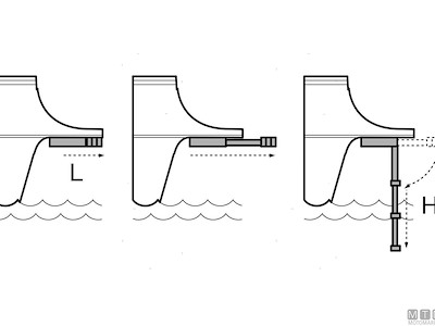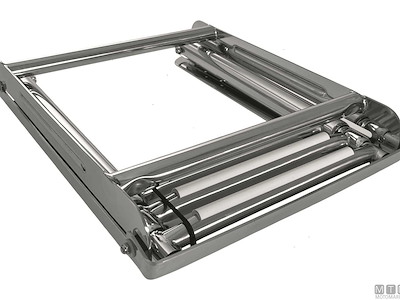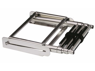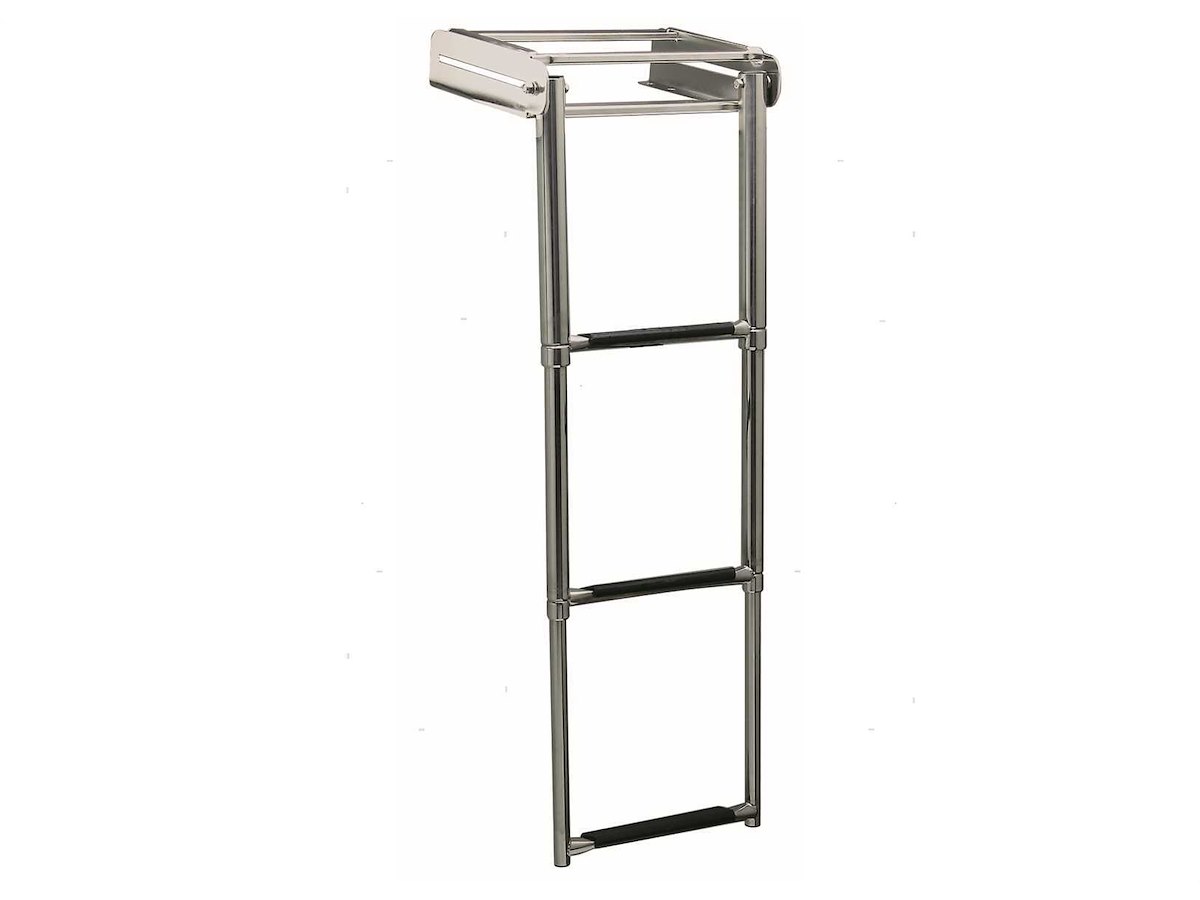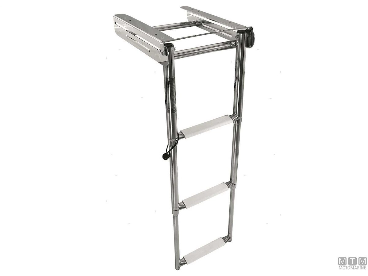 Scalette telescopiche in Acciaio Inox complete di guida e gabbia. Montaggio a filo sotto plance e plancette. Gradini rivestiti per un maggiore comfort.