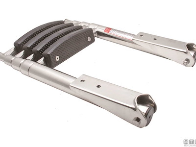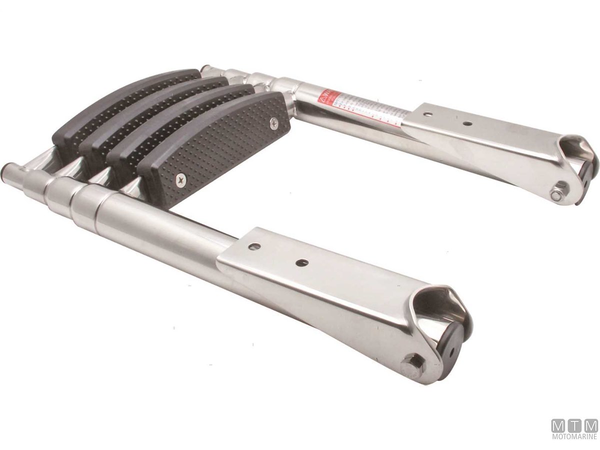 Scalette telescopiche ribaltabili in Acciaio Inox con gradini larghi per una comoda risalita. Montaggio su plance e plancette.