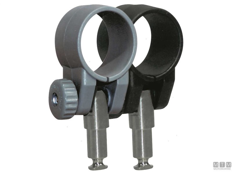 Scalmiere in Plastica con morsetto per remi ø 35 mm. Gambo in Ottone con innesto a baionetta per piastre portascalmi di gommoni e tender.