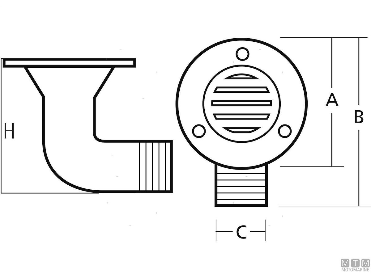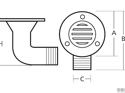 Scarico in Acciaio Inox con griglia estraibile per pozzetti e servizi.Attacco per tubi da 38mm. Cod.: 1412004 C mm: 38 A mm: 80 B mm: 100 H mm: 79