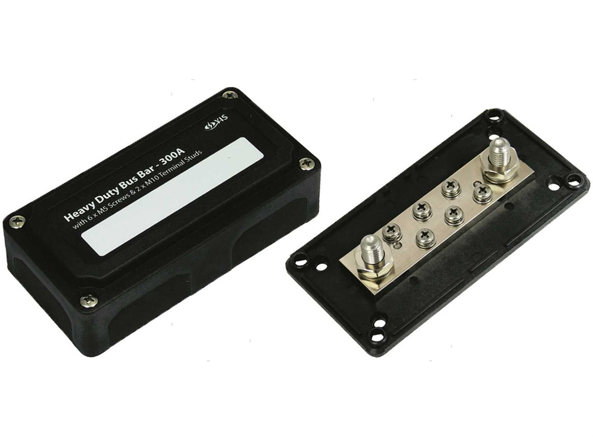 Scatola di connessione con 2 x M10 e 6 x M5 viti in Ottone Nichelato e base isolata. Completa di coperchio con etichetta.