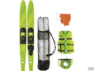 Sci d'acqua Jobe progettati con la giusta combinazione tra prestazioni e manovrabilità. Costruiti con struttura ad iniezione di fibra e rinforzi metallici ad asta per una maggiore rigidità e rifiniti con strato lucido protettivo. Completi con attacchi rinforzati regolabili da 36 a 47 e pinna ad alta visibilità. La versione package contiene in più la borsa per contenere gli sci, 18 m corda da traino, giubbetto di galleggiamento universale e bandiera di segnalazione per acqua sport.