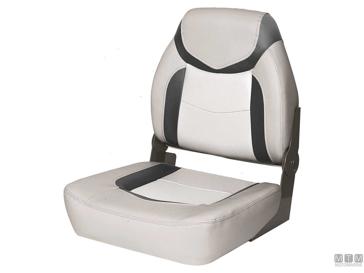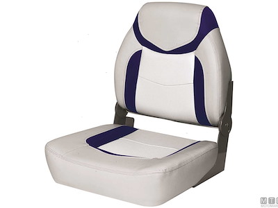 Sedile pieghevole imbottito rivestito in resistente Skay marino. Scocca in plastica caricata e cerniere in Alluminio anti-corrosione. Design con seduta molto confortevole.