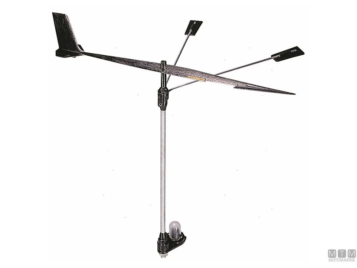 Segnavento con sospensione su cuscinetto a sfere. Supporto in Acciao Inox e sensore in Plastica. Tacche di riferimento regolabili sull'angolo di bolina.
