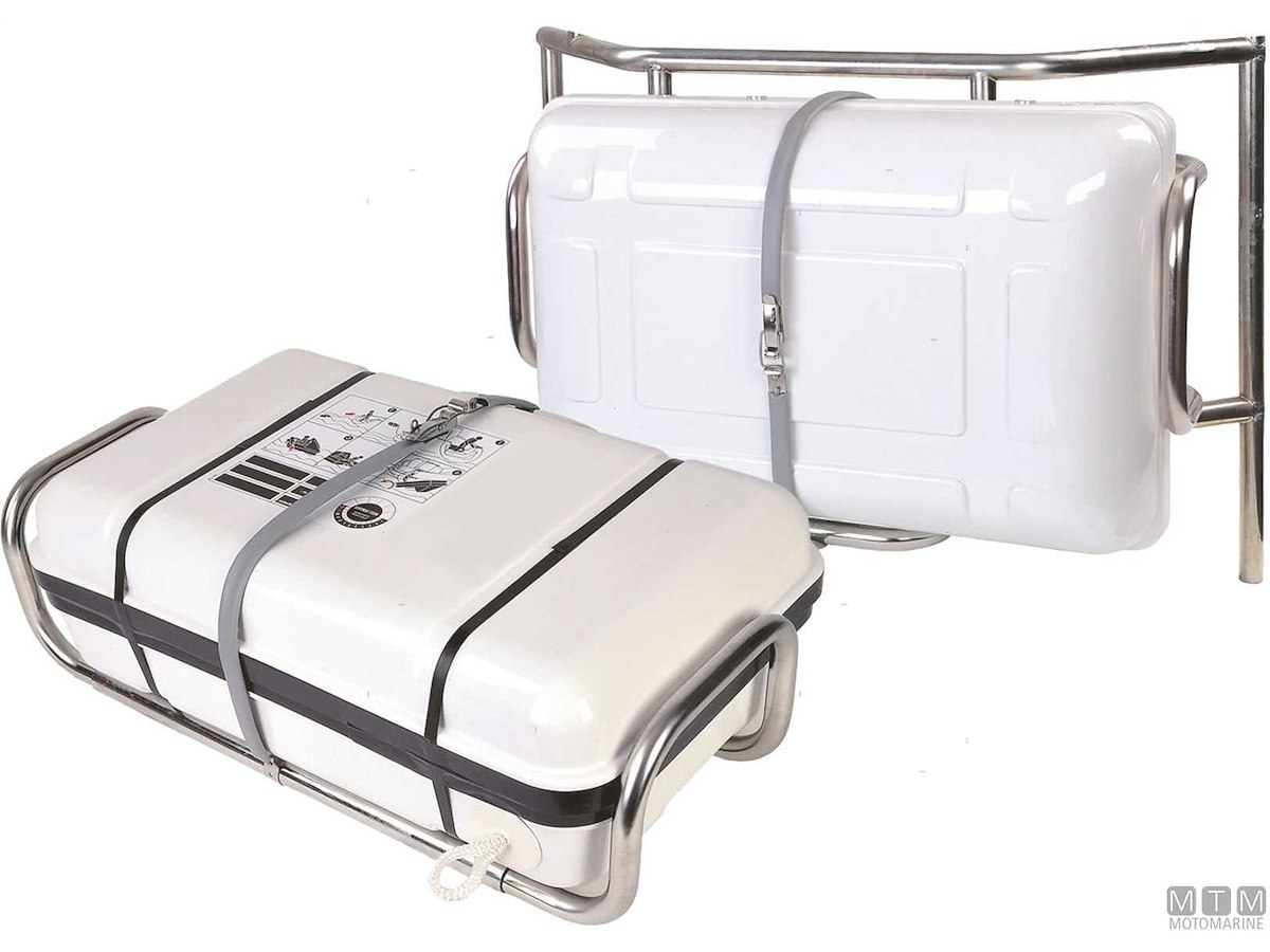 Sella per zattere autogonfiabili con telaio regolabile in Acciaio Inox. Si adatta a vari tipi di zattere in commercio. Completa di morsetti clamp per attacco a pulpiti, passamani, rollbar, etc.