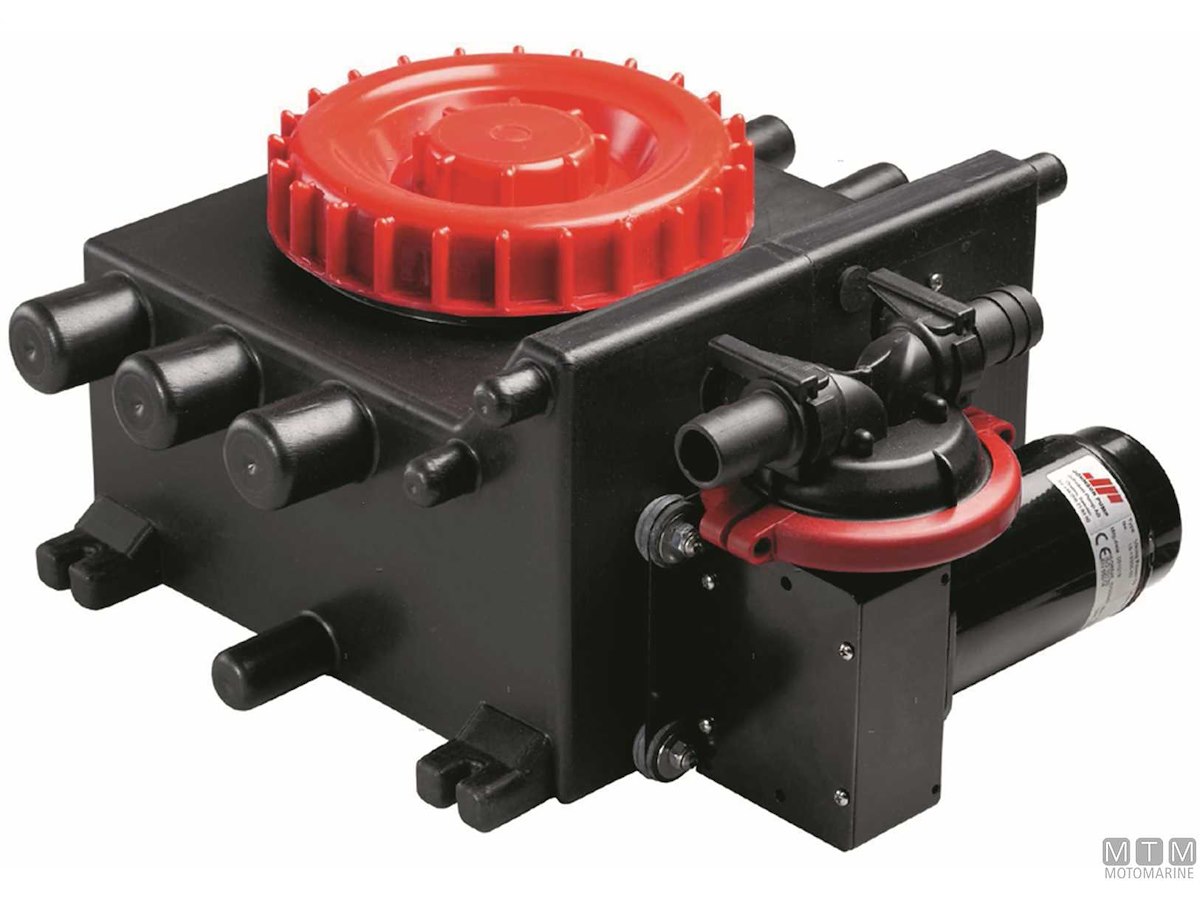 Serbatoio a pozzetto per la raccolta acque grigie di docce, lavandini e servizi. Completo di interruttore elettronico presenza acqua Johnson Ultima e predisposizione per installazione pompa Viking Power 16 (1826032/34). In alternativa può essere completato con una pompa qualsiasi 12/24V fino a 20A. Entrata ø 19/25/38 mm / Uscita ø 19/25 mm.
