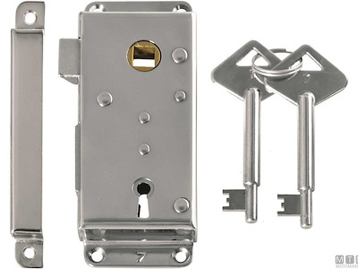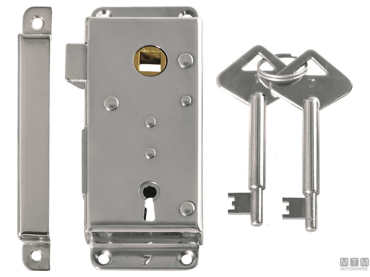 Serratura da accostare con chiavi e scontro a cassetta. Corpo in Ottone Cromato, componenti inossidabili.Maniglie da ordinare a parte.
