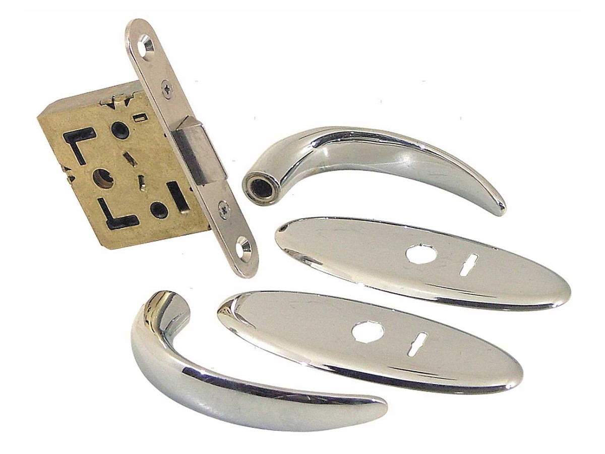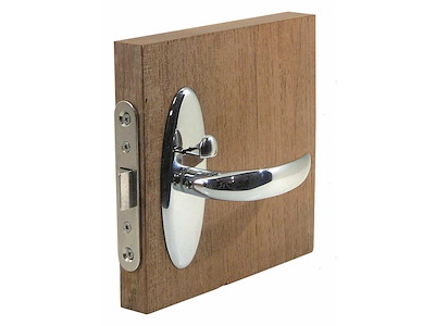 Serratura da infilare costruita con materiali resistenti alla corrosione. Sistema di blocco interno di privacy elegante e sicuro. Facile da installare grazie al semplice disegno. Completa di maniglie e placche. Mano universale DX/SX.