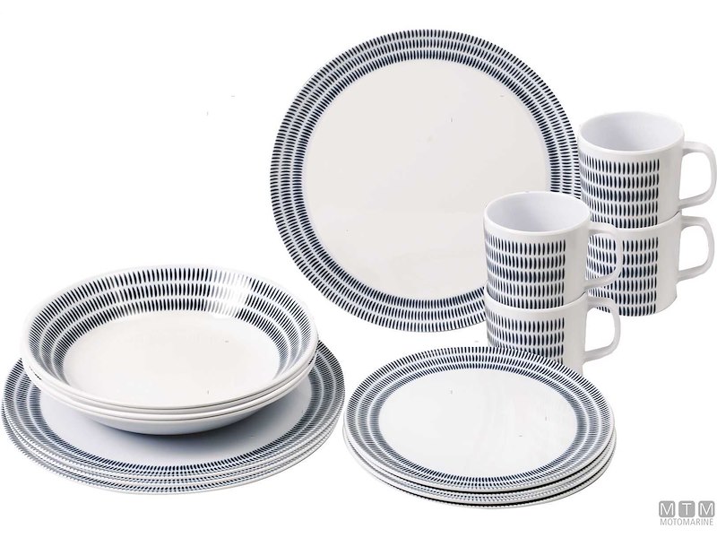Servizio da 16 pezzi Bluebay in leggera Melamina infrangibile per uso alimenare.