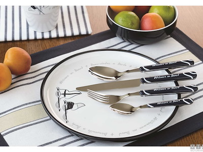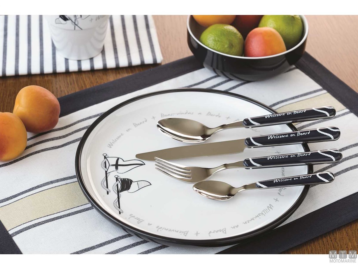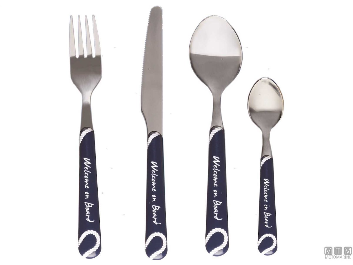 Servizio posate in Acciaio Inox con decoro Welcome On Board in confezione da 6 x 4 pezzi. Cod.: 5802107 Confezione pz: 6