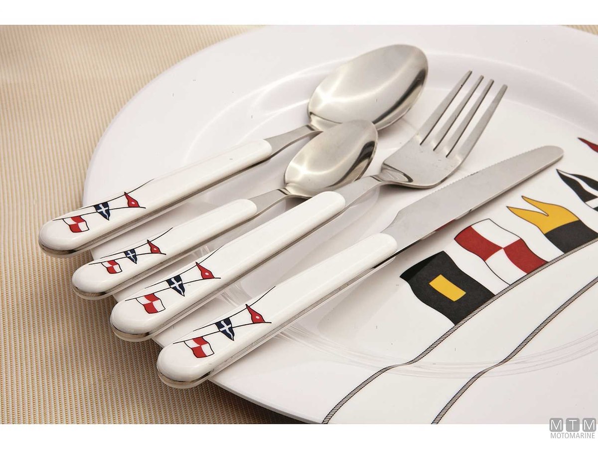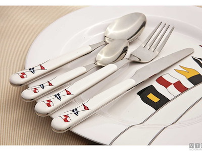 Servizio posate in Acciaio Inox con decoro Regata in confezione da 6 x 4 pezzi.