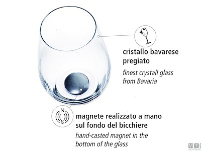 Eleganti bicchieri da longdrink Silwy in cristallo di alta qualità con pratici magneti integrati sul fondo che ne rendono sicuro l’appoggio anche quando il mare è mosso. Rapporto di tenuta perfetto tra sottobicchiere e bicchiere. I sottobicchieri metallici in nano-gel sono rimovibili, durevoli, non lasciano residui e aderiscono a tutte le superfici. Forniti in set da 2 bicchieri, compresi di sottobicchieri in nano-gel metallizzati.