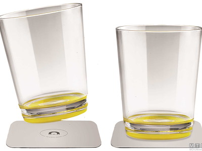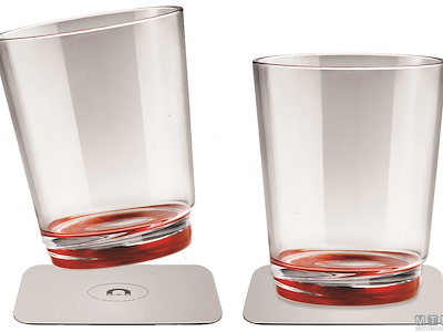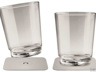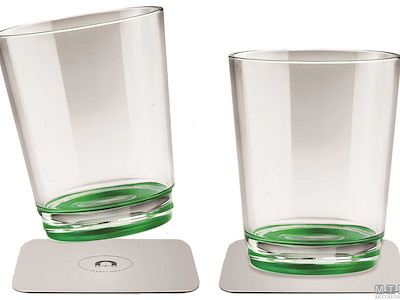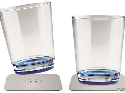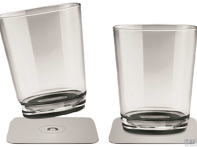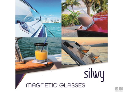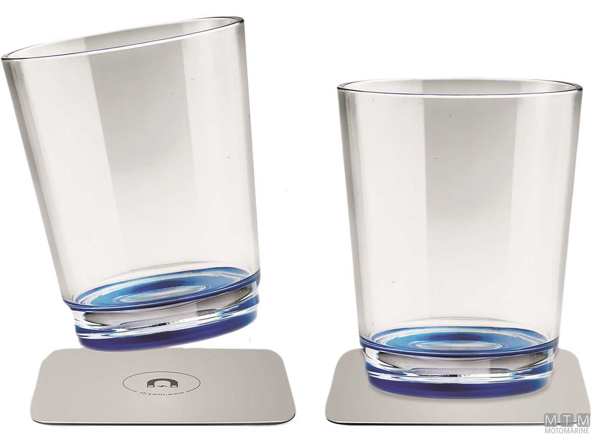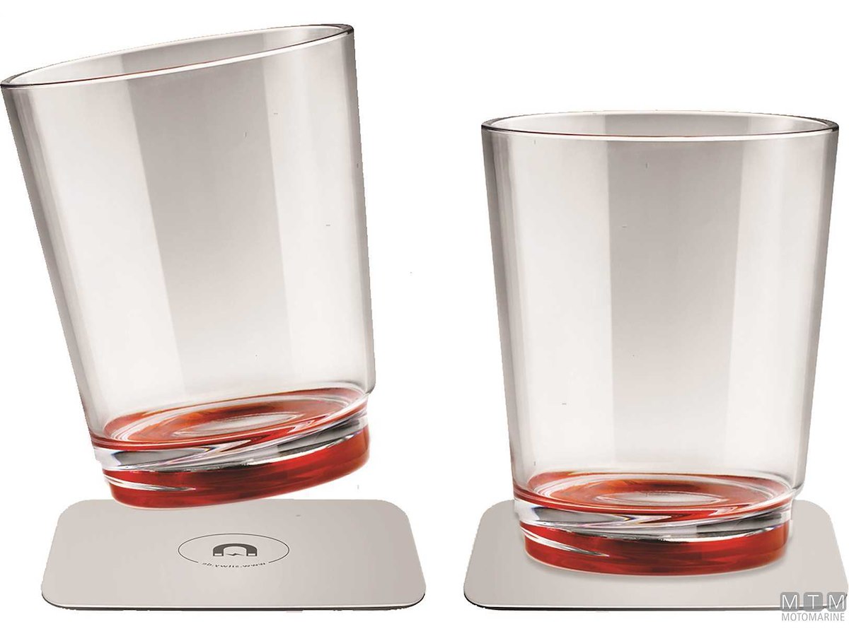 Eleganti bicchieri Silwy con pratici magneti integrati sul fondo che ne rendono sicuro l’appoggio anche quando il mare è mosso. Realizzati in plastica alimentare di alta qualità, testata e certificata, infrangibile e completamente trasparente. Rapporto di tenuta perfetto tra sottobicchiere e bicchiere. I sottobicchieri metallici in nano-gel sono rimovibili, durevoli, non lasciano residui e aderiscono a tutte le superfici. Forniti in set da 2 bicchieri, compresi di sottobicchieri in nano-gel metallizzati.