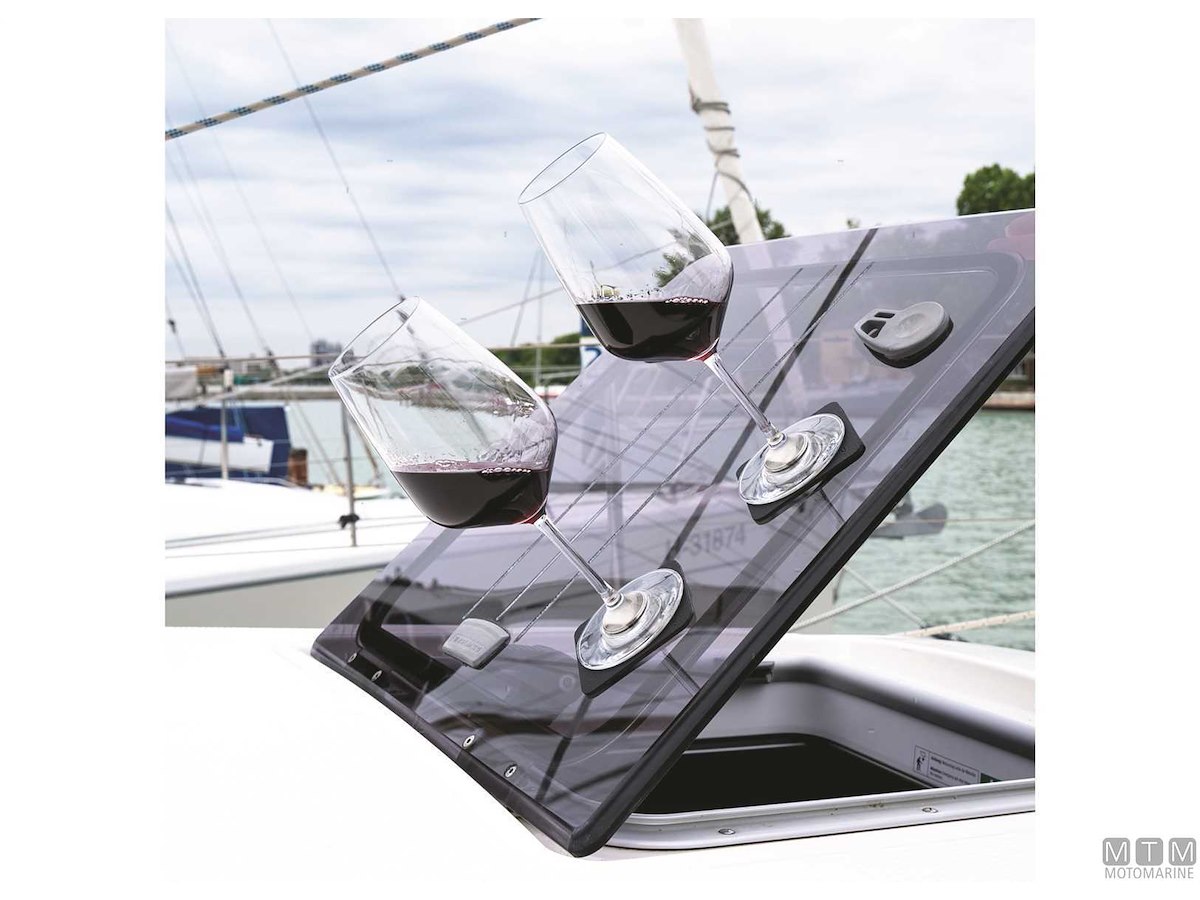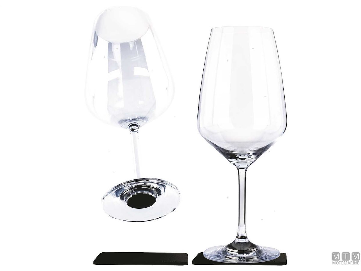 Eleganti calici da vino Silwy in cristallo di alta qualità con pratici magneti integrati sul fondo che ne rendono sicuro l’appoggio anche quando il mare è mosso. Rapporto di tenuta perfetto tra sottobicchiere e bicchiere. I sottobicchieri metallici in nano-gel sono rimovibili, durevoli, non lasciano residui e aderiscono a tutte le superfici. Forniti in set da 2 bicchieri, compresi di sottobicchieri in nano-gel metallizzati.