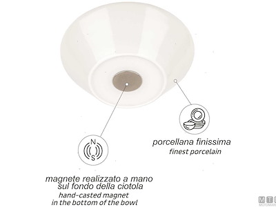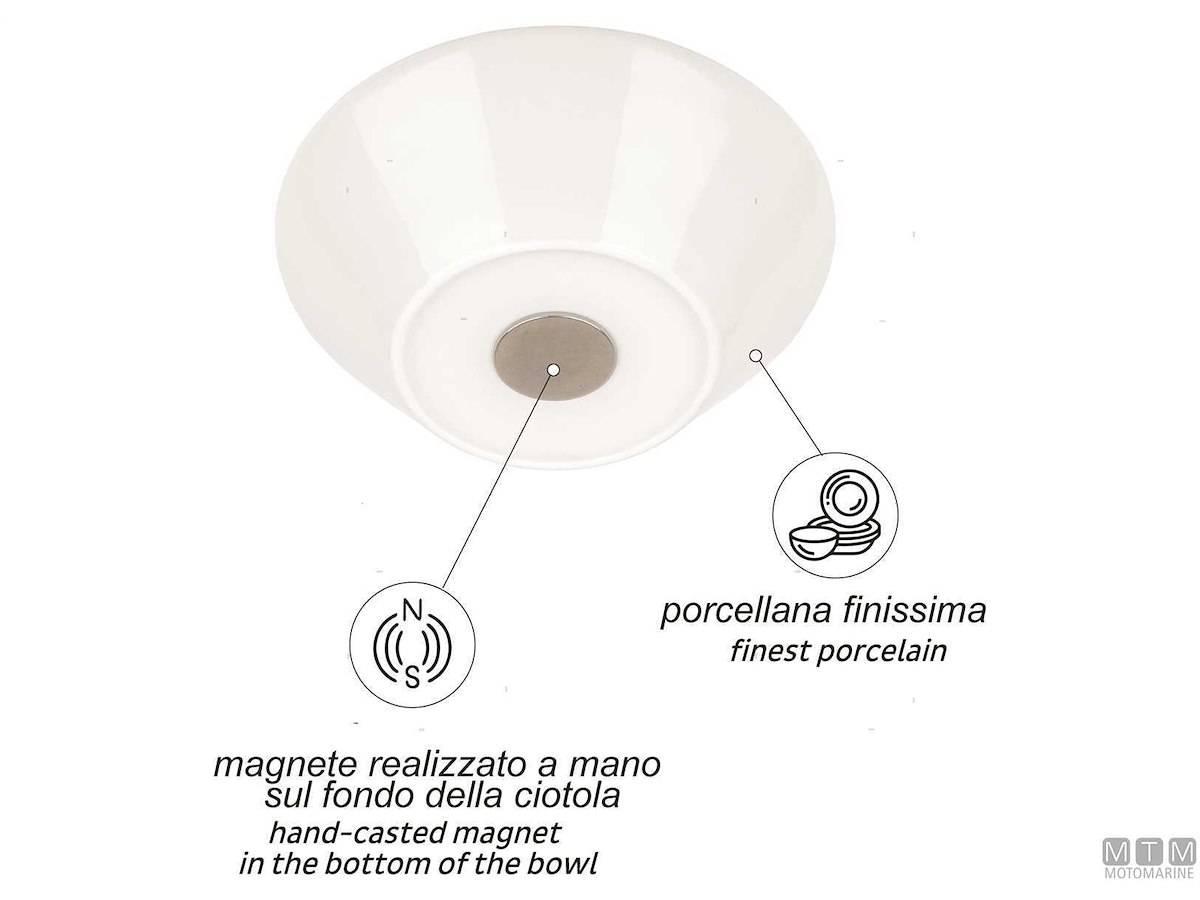 Set di 2 ciotole Silwy in porcellana di alta qualità con pratici magneti integrati sul fondo che ne rendono sicuro l’appoggio anche quando il mare è mosso. Da usare con tappetino o vassoio metallico (non inclusi).