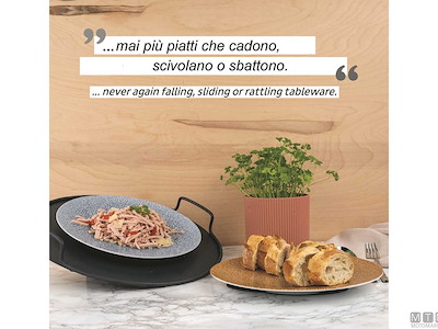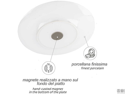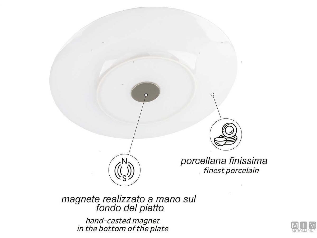 Set di 2 piatti piani Ocean Silwy in porcellana finissima con pratici magneti integrati sul fondo che ne rendono sicuro l’appoggio anche quando il mare è mosso. Da usare con tappetino o vassoio metallico (non inclusi).