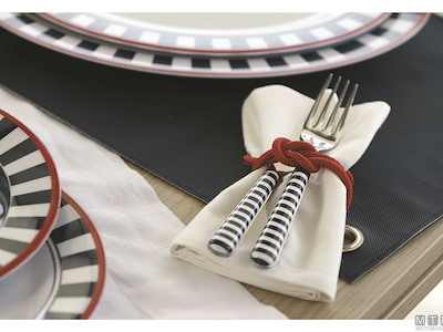 Set di 2 tovagliette in tessuto antimacchia e idrorepellente con cima all'angolo.