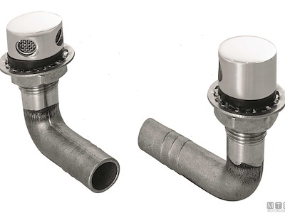 Sfiato con curva a 90° in Acciaio Inox per serbatoi. Difesa in rete Inox. Cod.: 1709904 H mm: 70 ø mm: 16