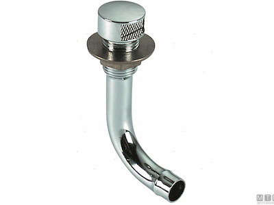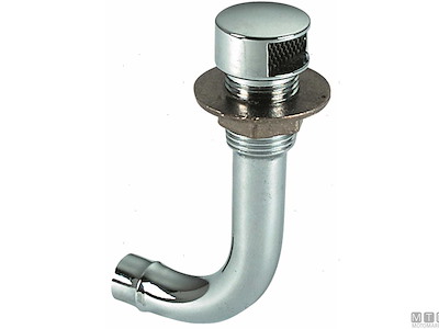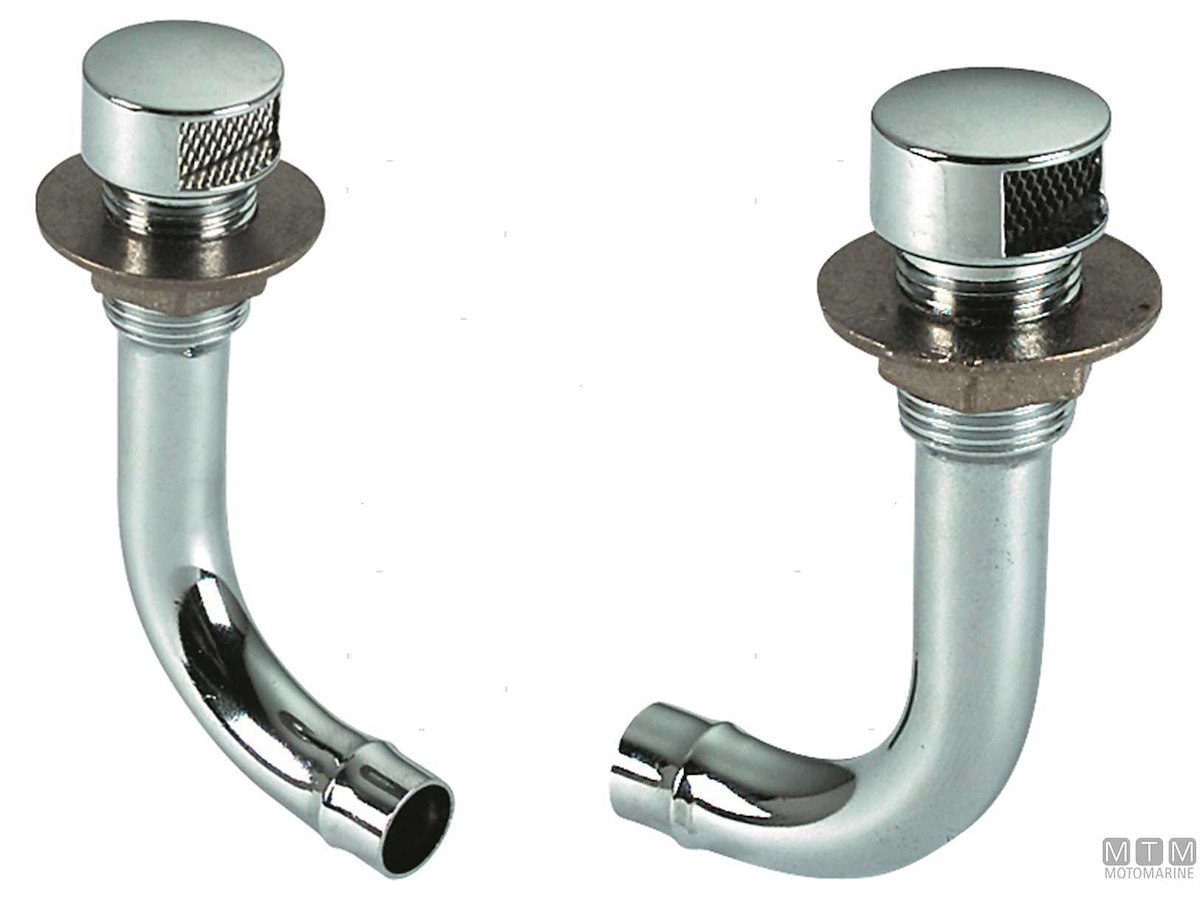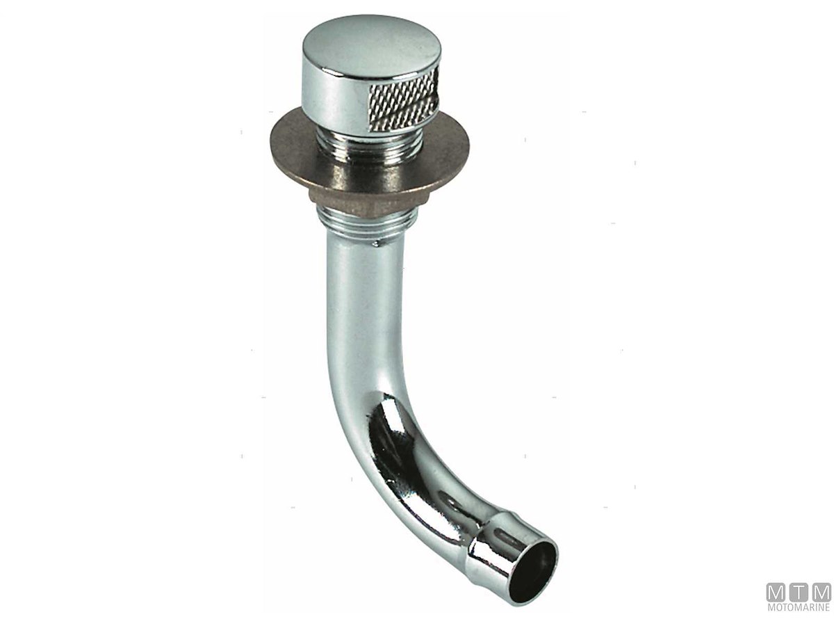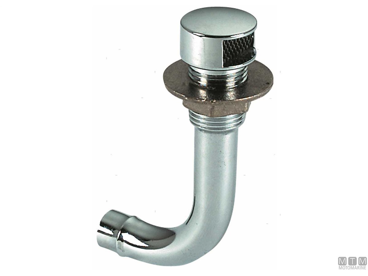 Sfiato con curva a 90° in Ottone Cromato per serbatoi. Difesa in rete Inox.