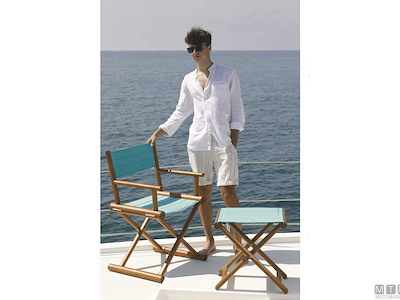 Sgabelli pieghevoli Marine Business in pregiato Teak di alta qualità trattato appositamente per resistere ai raggi UV e all'ambiente marino. Ferramenta e viti in Acciaio Inox con cerniere a scomparsa. Tela antistrappo di Olefina che respinge l'acqua, è resistente al sole (non perde colore) e lavabile anche con candeggina. A disposizione il tessuto ricambio in 5 colori.