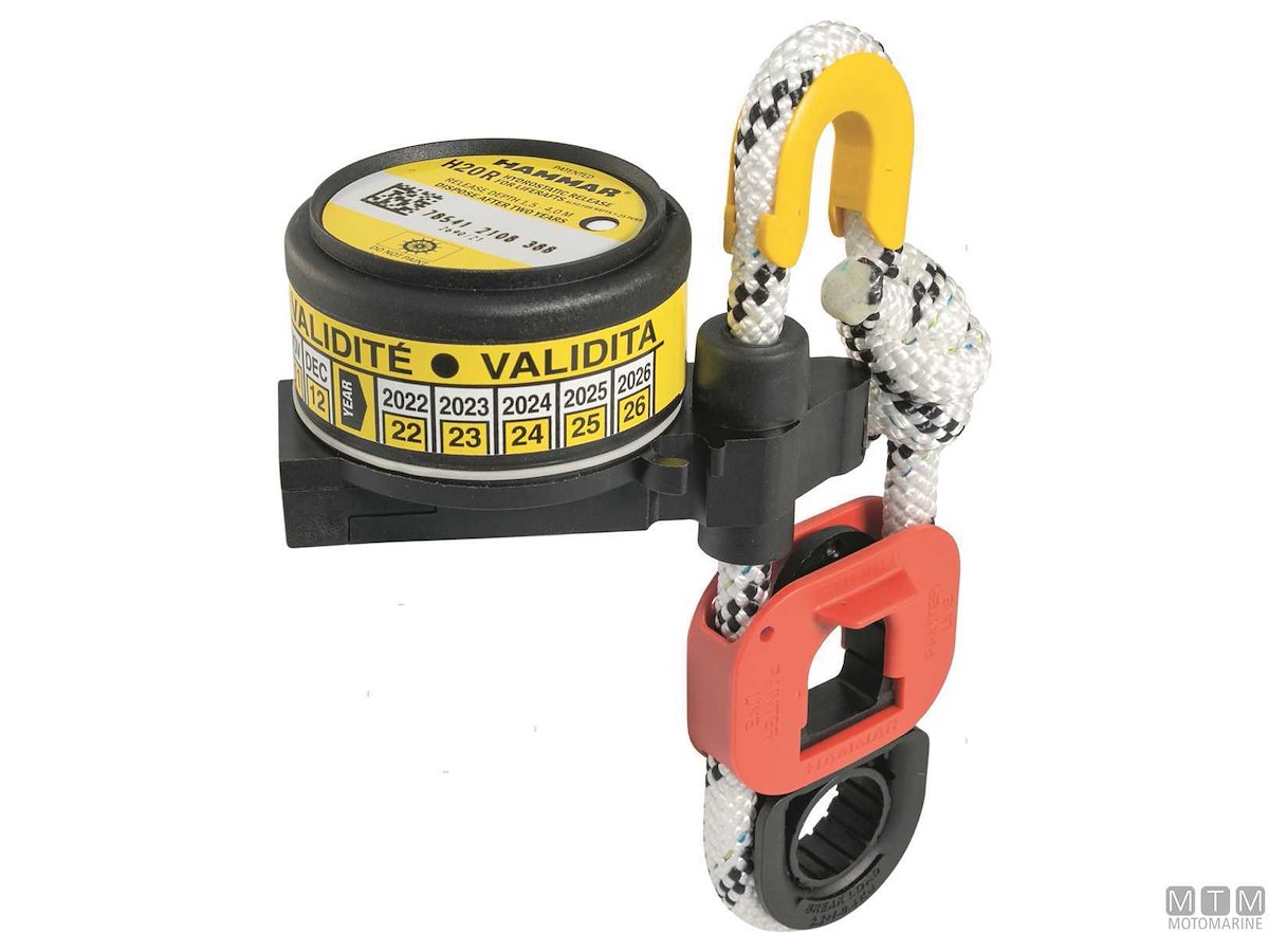 Sgancio idrostatico Hammar originale H20 R per zattere autogonfiabili. Certificazione SOLAS e ISO9001 Bureau Veritas.