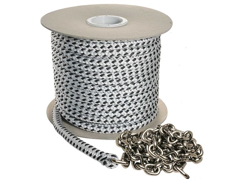 Sistema treccia/catena per ancora pronto per l'uso con impiombatura a sagoma perfetta. Catena calibrata in Acciaio Inox AISI 316 e treccia in Poliestere 16 fusi ad alta tenacità resistente all'abrasione. Può essere facilmente issata a mano oppure girata nel barbotin del verricello.