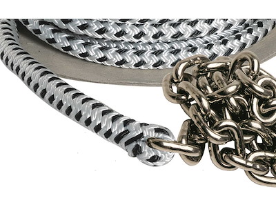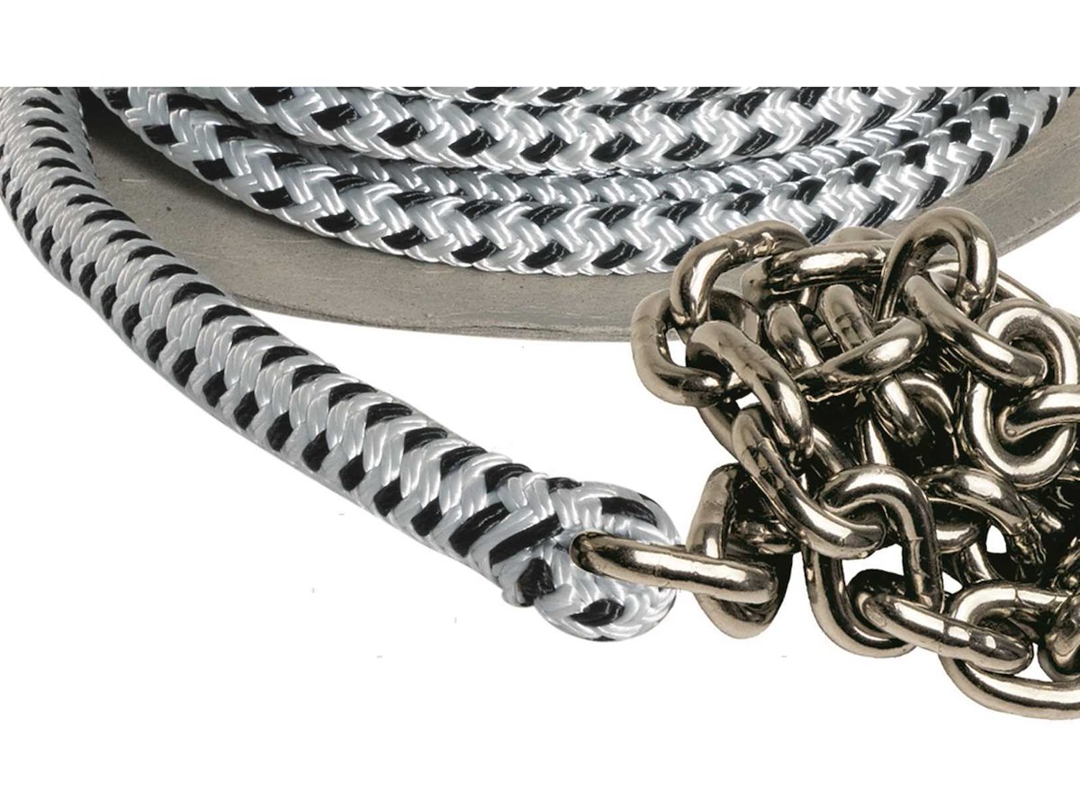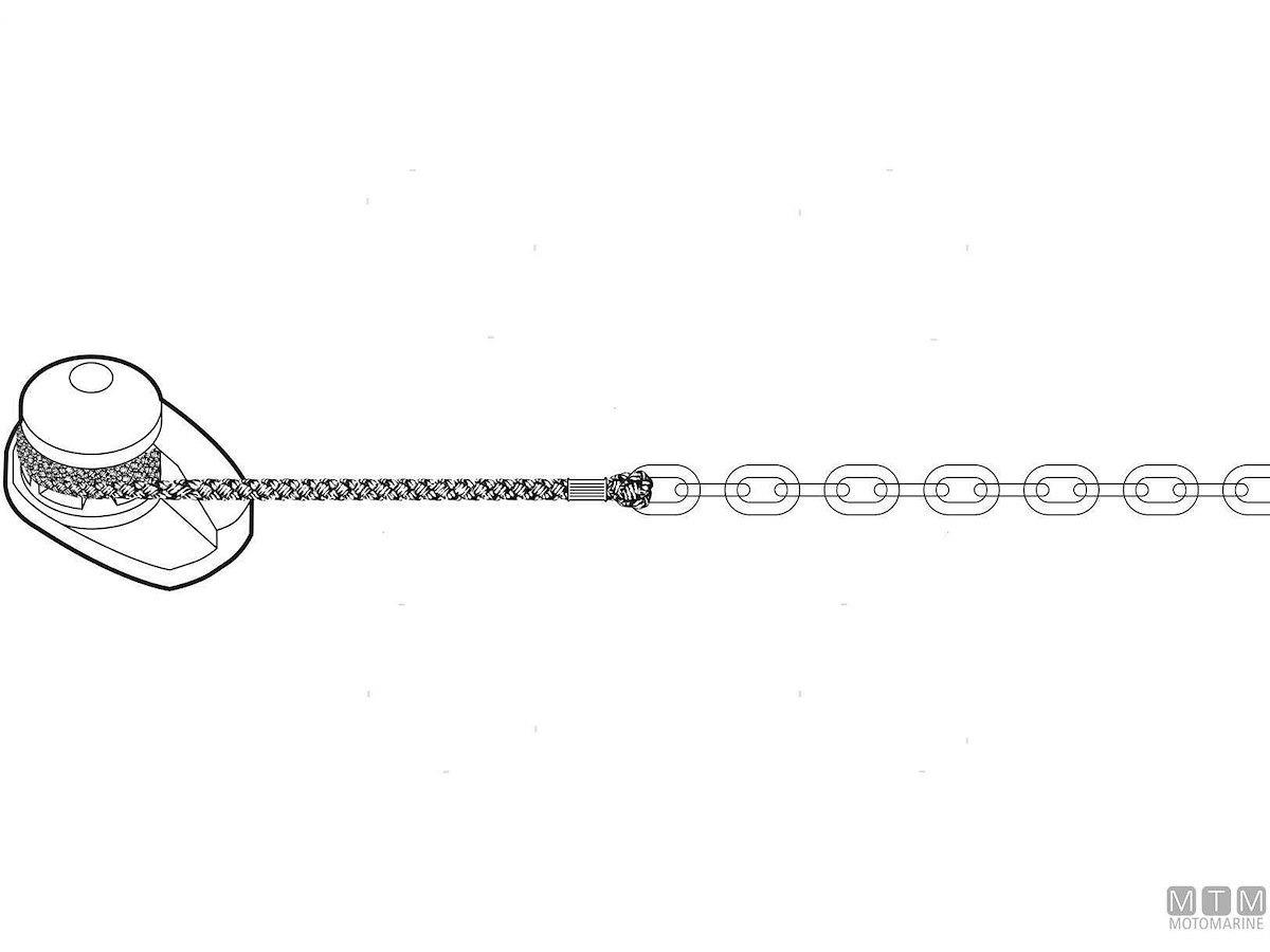 Sistema treccia/catena per ancora pronto per l'uso con impiombatura a sagoma perfetta. Catena calibrata in Acciaio Inox AISI 316 e treccia in Poliestere 16 fusi ad alta tenacità resistente all'abrasione.