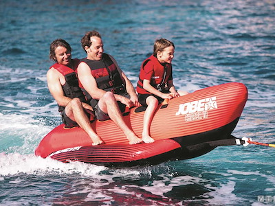 Gonfiabile da traino classico a banana in resistente PVC 28G ricoperto con camicia protettiva in Nylon 840D. Con anello da traino rinforzato, valvola Boston, maniglie imbottite e sedute con protezione in Neoprene. Con 3 anni di garanzia dopo registrazione sul sito Jobe.