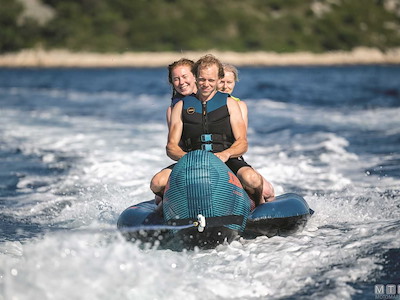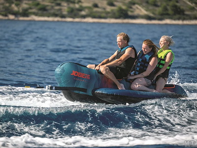 Gonfiabile da traino classico a banana in resistente PVC 28G ricoperto con camicia protettiva in Nylon 840D. Con anello da traino rinforzato, valvola Boston, maniglie imbottite e sedute con protezione in Neoprene. Con 3 anni di garanzia dopo registrazione sul sito Jobe.