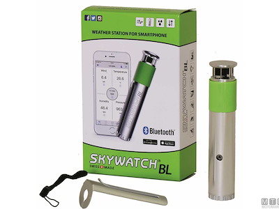 Strumento meteo portatile completo che si connette allo smartphone via Bluetooth. Ideale per attività professionali e sportive di vela, surf, parapendio, trekking, ecc. Costruito in Alluminio Anodizzato IP67 con batteria ricaricabile micro USB. Dimensioni Ø26 x 116 mm. Completo di laccio, custodia e scatola in metallo. Compatibile con iPhone/iPad e Android.
