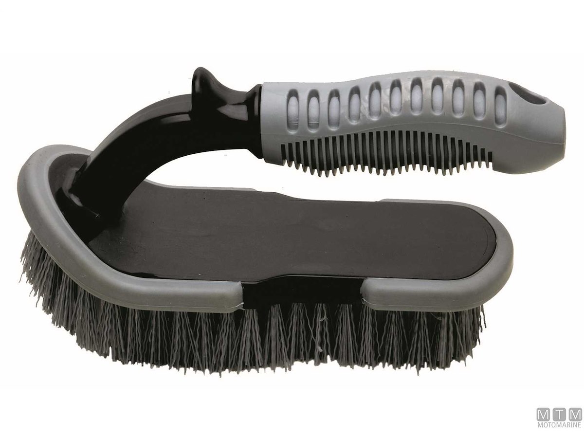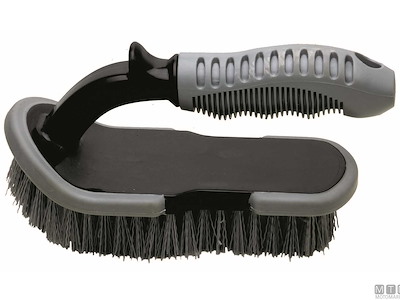 Spazzola con corpo in PVC, bordo in gomma antiurto, fibre a setola dura di alta qualità e manico ergonomico rivestito in gomma.