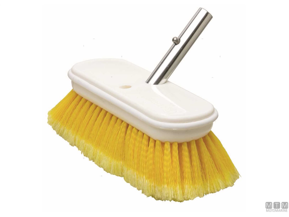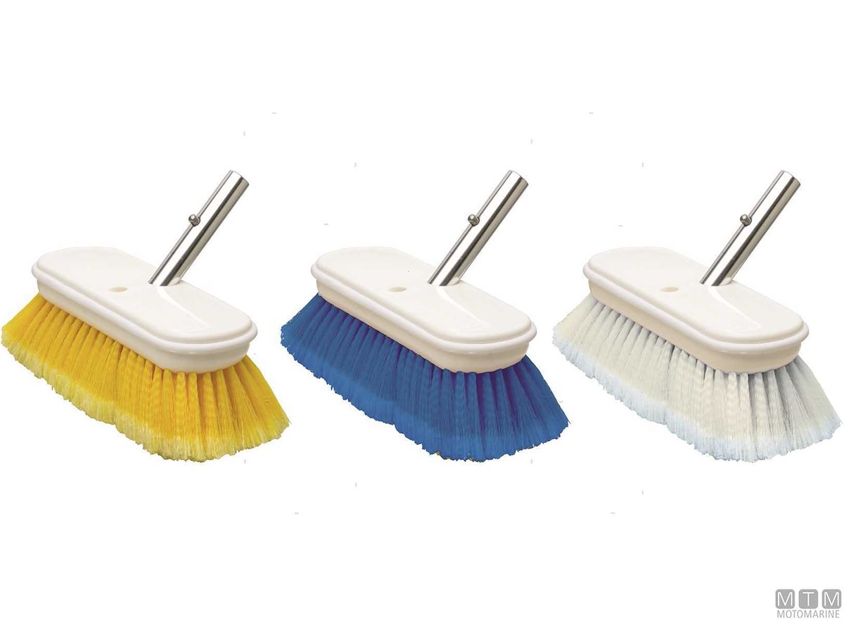 Spazzole in Polipropilene con bordo antiurto in gomma, da completare con manico.↵Spazzola Gialla - setola morbida: ideale per il lavaggio di finestrature e pareti↵Spazzola Blu - setola media: perfetta per la pulizia generale a bordo↵Spazzola Bianca - setola dura: per il lavaggio di ponti, superfici ruvide e molto sporcheMocio - frange in PVA (pelle sintetica ad altissimo assorbimento d'acqua)